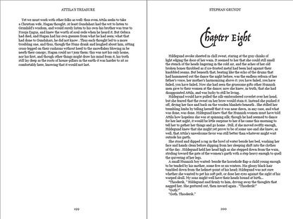 Attila’s Treasures continues the story of Hagen from Grundy’s earlier novel Rhinegold, as he is taken as a prisoner by a group of nomadic Huns.